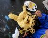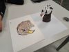 Little Cosmo is a hybrid that embodies various animals and the four elements. One part of its fur is black and the other one is grey. Its spiral, gaze, presence and walking posture refer to the cosmos. Breath circulates throughout its body and lights up its chest. Little Cosmo symbolizes life force and its transmission. Its influence shapes the process of the workshops.